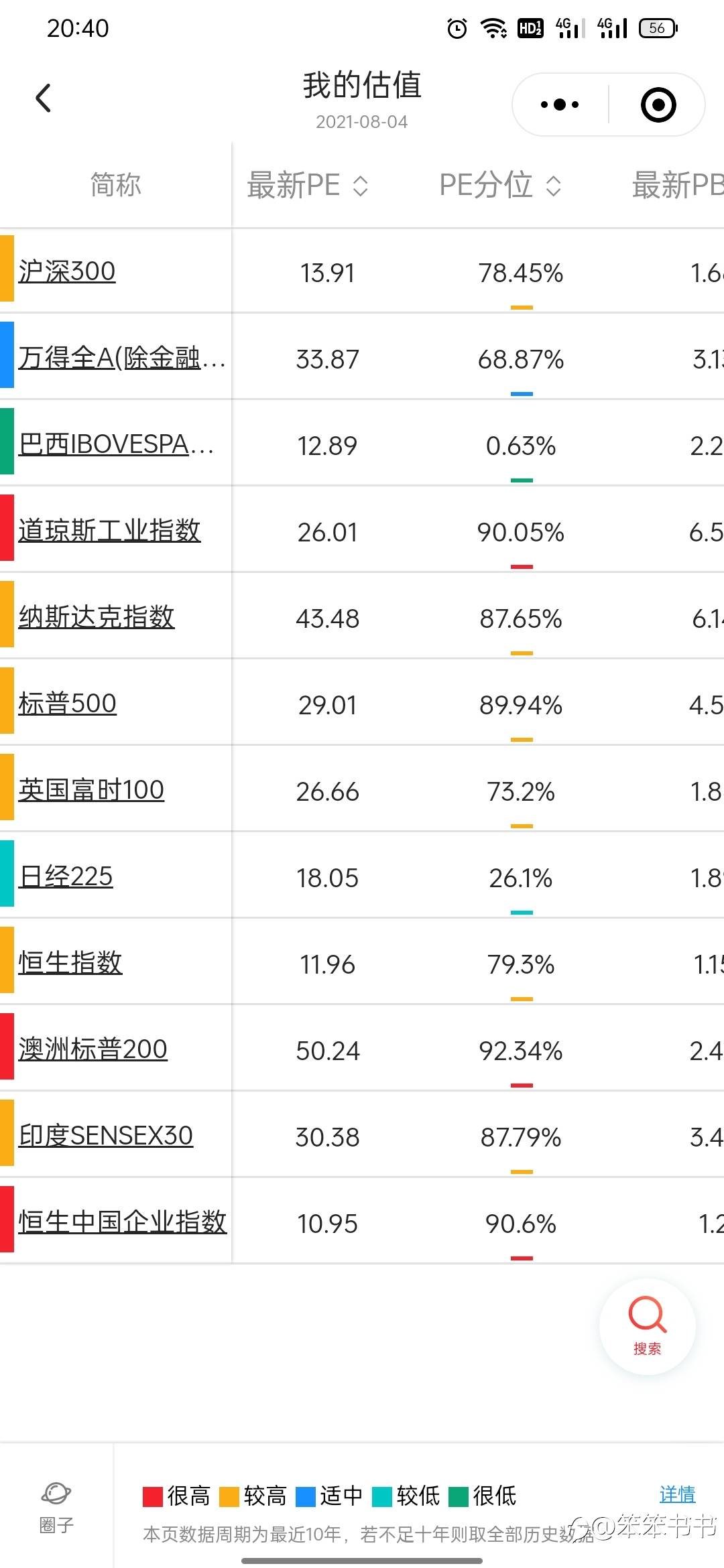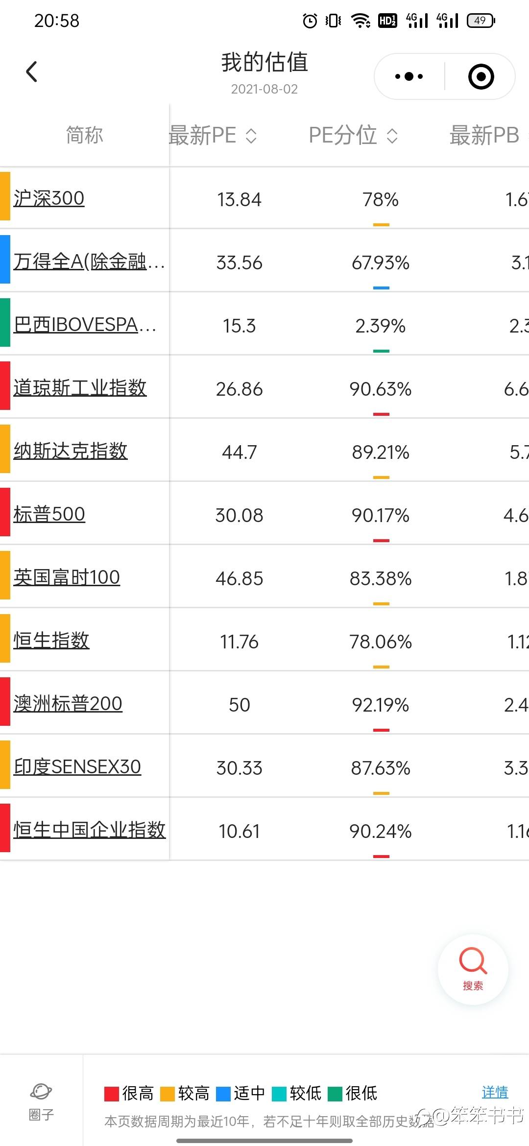 今日指数估值
