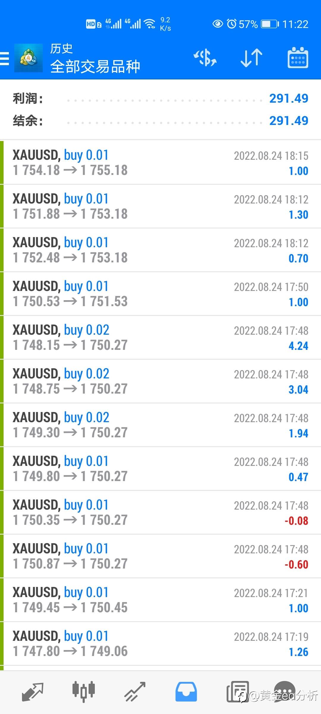 #XAU/USD#今日ea收益280美金😝全程风控无套单