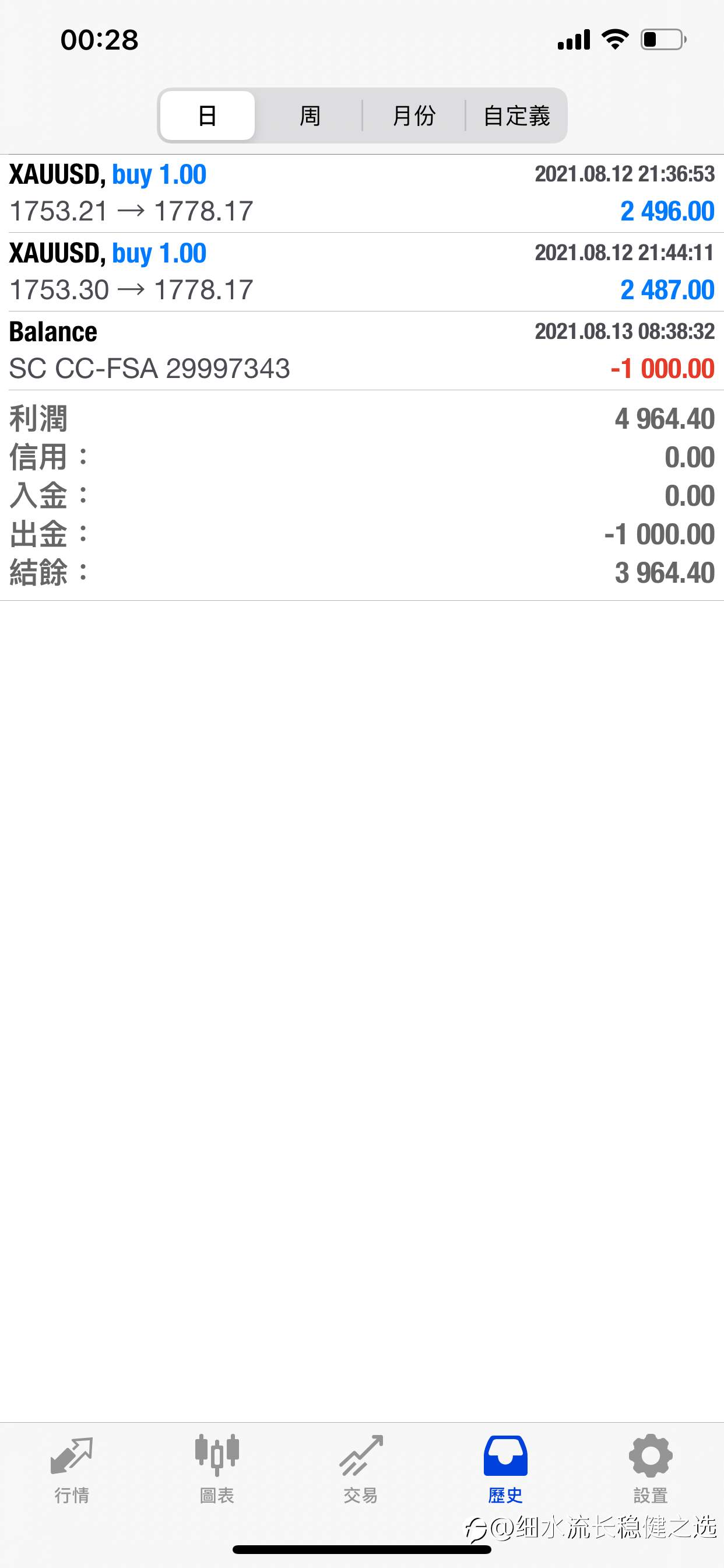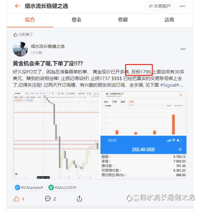 下午跟大家说的黄金多单,已经获利离场了,赚了4000多美元,如下图: