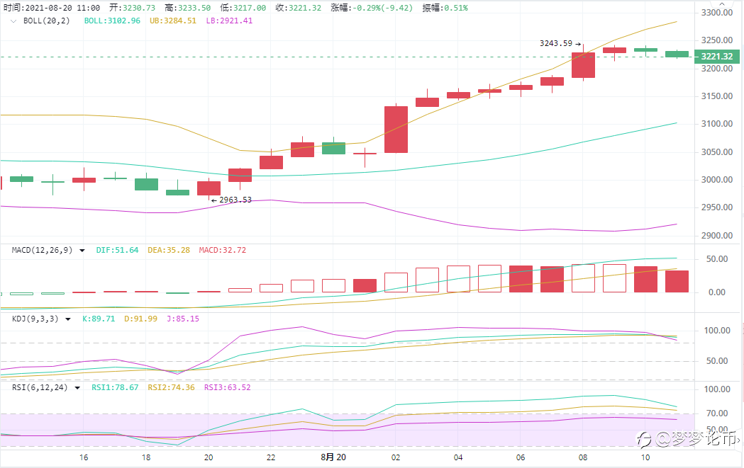 以太坊方面经过早间的回踩,低点企稳3147一线后价格开始震荡上行。目前价格位于3330一带震荡运行。K线结构组合是偏空一点。下探反转上升留出下影线。这样才能进一步蓄势去攻高。