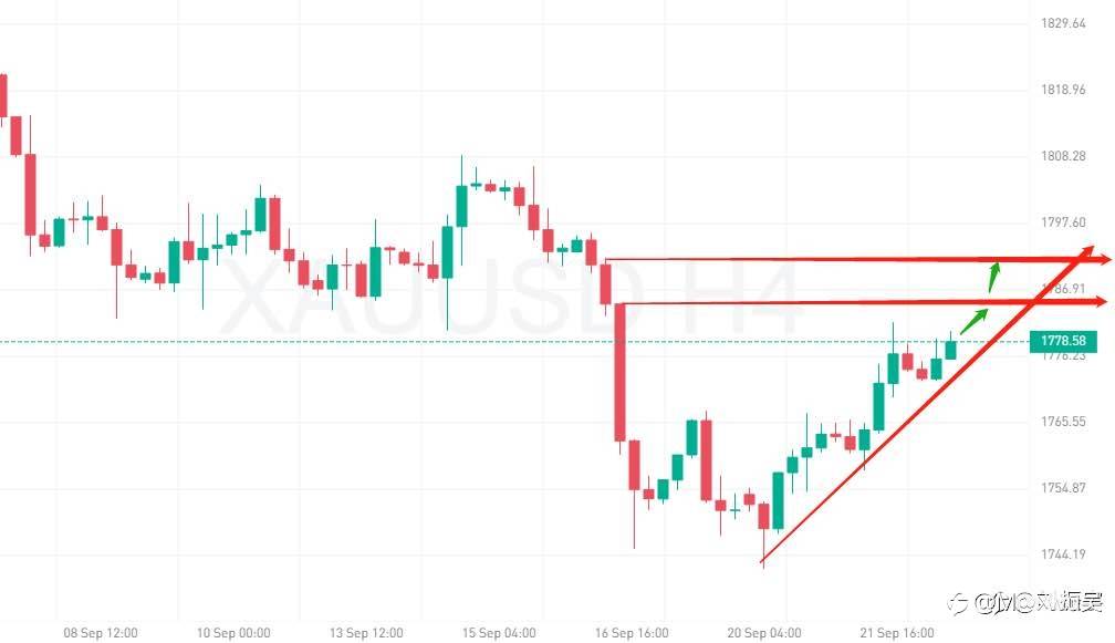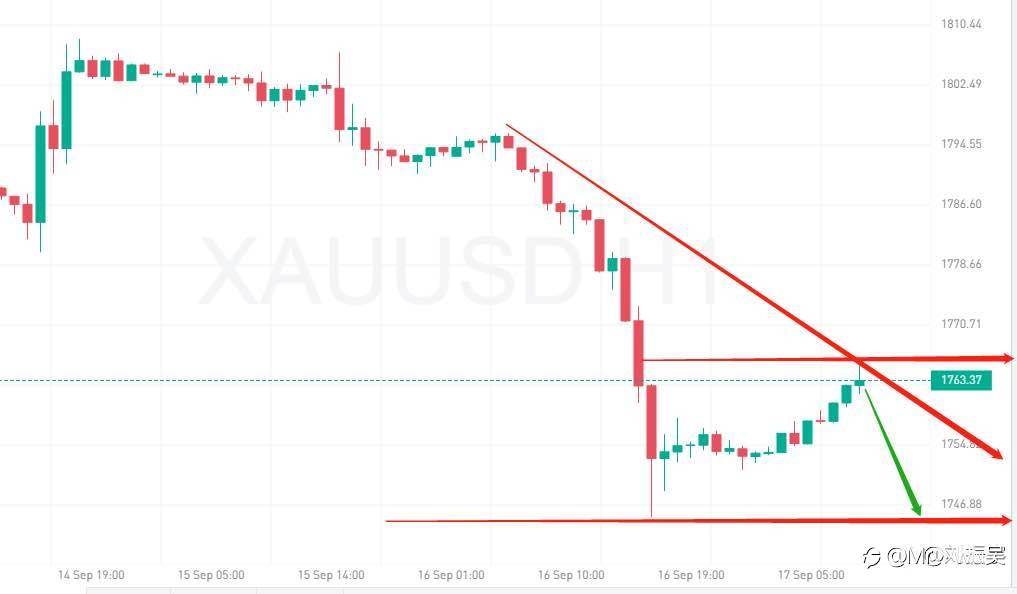 9.23现货黄金点评:凌晨2.00美联储利率决议公布后,现货黄金一度拉升近10美元,刷新日高至1787.19美元,但在鲍威尔新闻发布会期间大幅回落逾20美元,刷新日低至1764.54美元。凌晨金价走势冲高回落意味着从1741开始的第一阶段上行暂时停滞,那么今日黄金价格大概率还会再次下行。