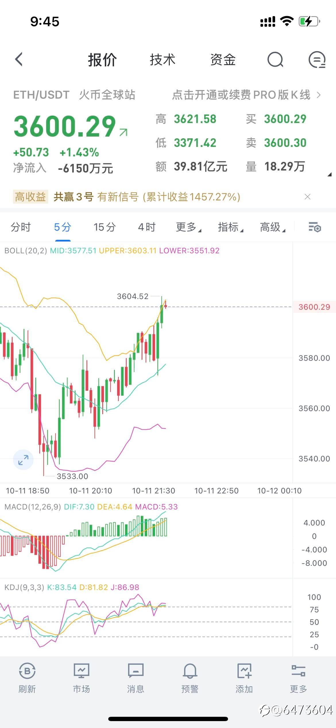 ETH午间分析 行情上,币价还是向上突破了3500一线。