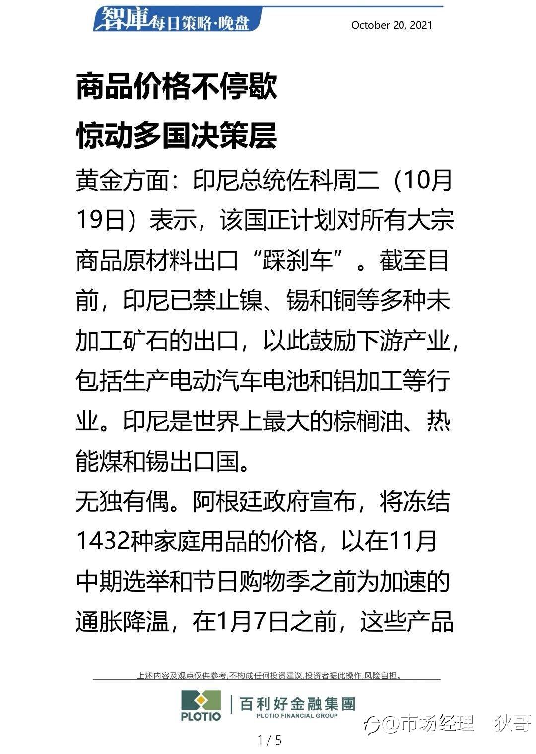 智库分析 - 晚盘10/21