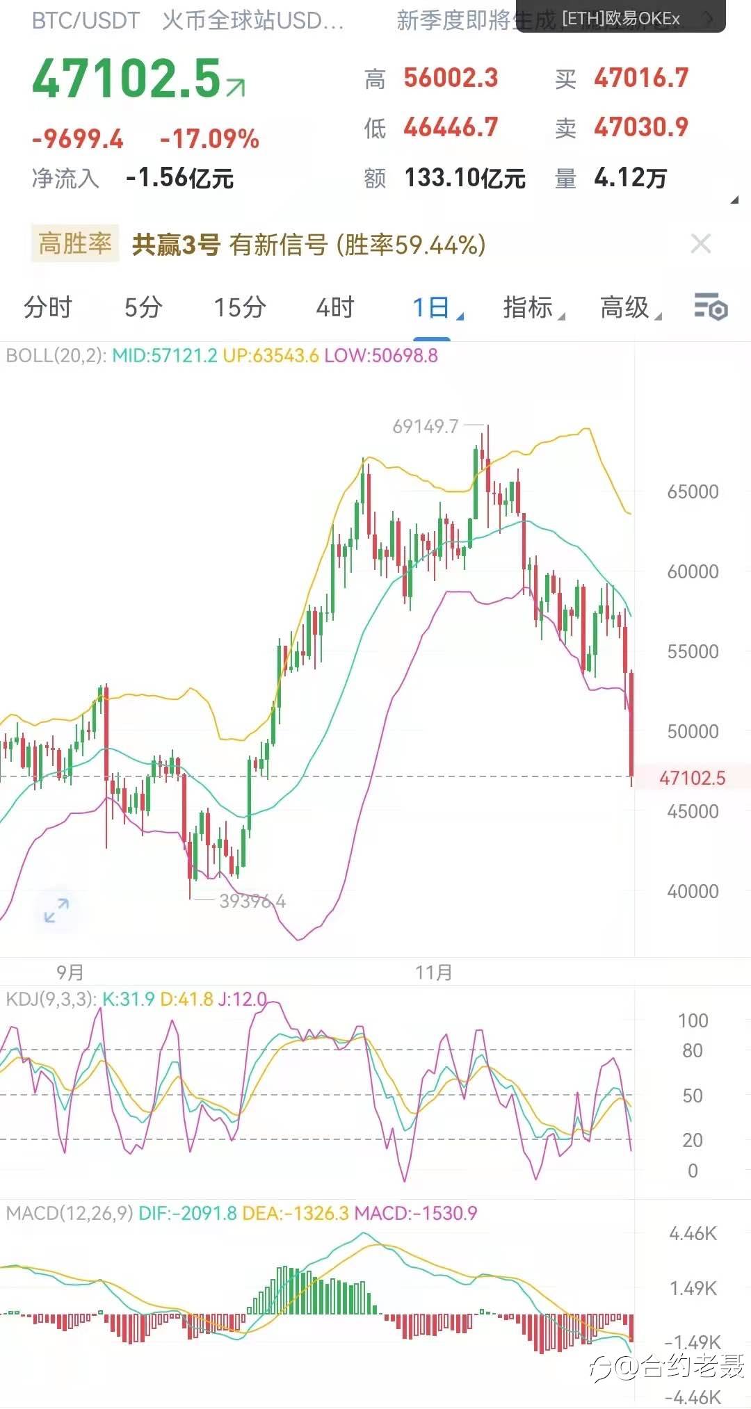 ltc价格昨日调整的也是比较厉害,不过回收的程度也算较强,那么昨天的蝙蝠形态可能未成立,但走出鲨鱼形态依旧是看160美元0.886蝙蝠形态的位置。正好触及上方的四小时趋势线。如果说莱特币价格假突破该趋势线走到1.13的鲨鱼形态,即比价达到165美元上涨开始无力,那么该位置也是不错的空军机会至少可以看向165美元。