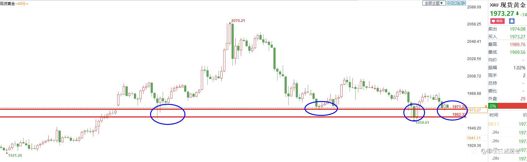 #XAU/USD# 黄金反弹至1956附近,测试下跌趋势能否成立,1956附近做空,防守位1964,下看1946能否跌破,跌破则看1938附近。