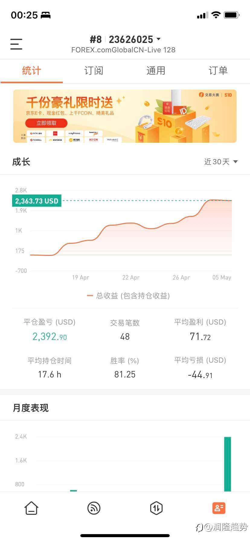 一个月的盈利,还可以。