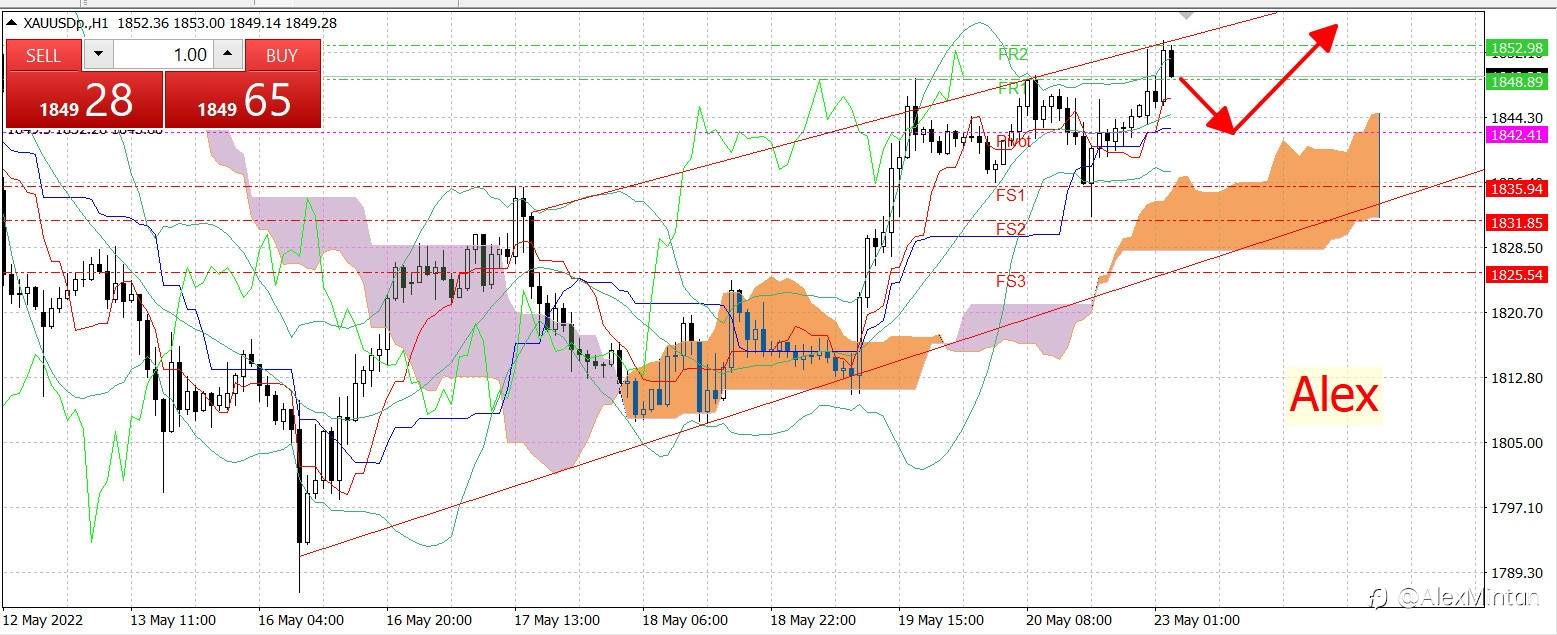 Nhìn chung trend H1 đang hình thành kênh giá tăng sau khi lập 3 đỉnh 1834-1845-1853. Hôm nay ad khuyến nghị có thể buy tại điểm xoay chiều