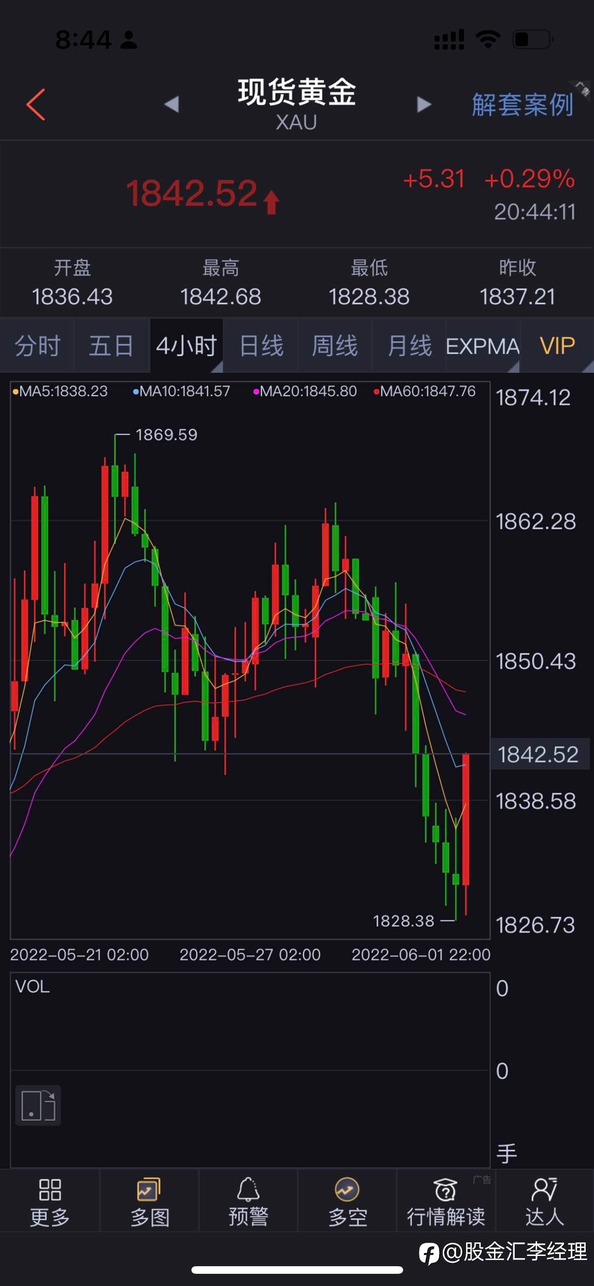 #XAU/USD# 目前1842,昨日破位1840空继续持有