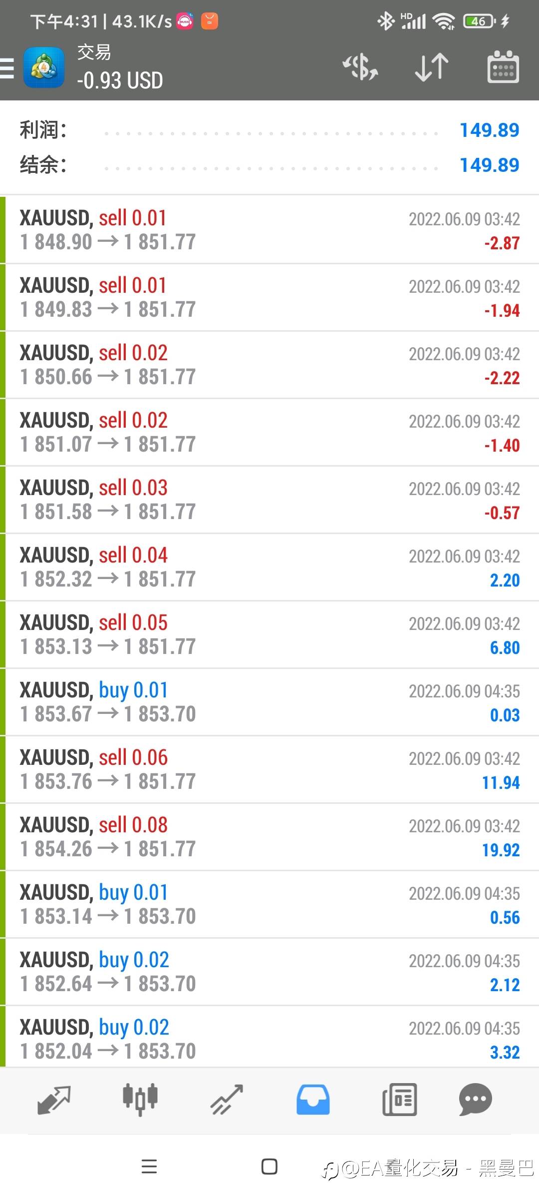 二来保送的不是我 现在专心研究ea量化 数据如下#EA交易讨论专区##XAU/USD##DBGMarkets盾博##FOLLOWME交易大赛##TMGM#