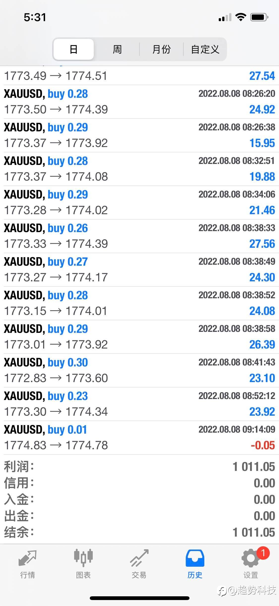 今日交易已完成,主页有显示!日内黄金EA,只做亚盘行情!