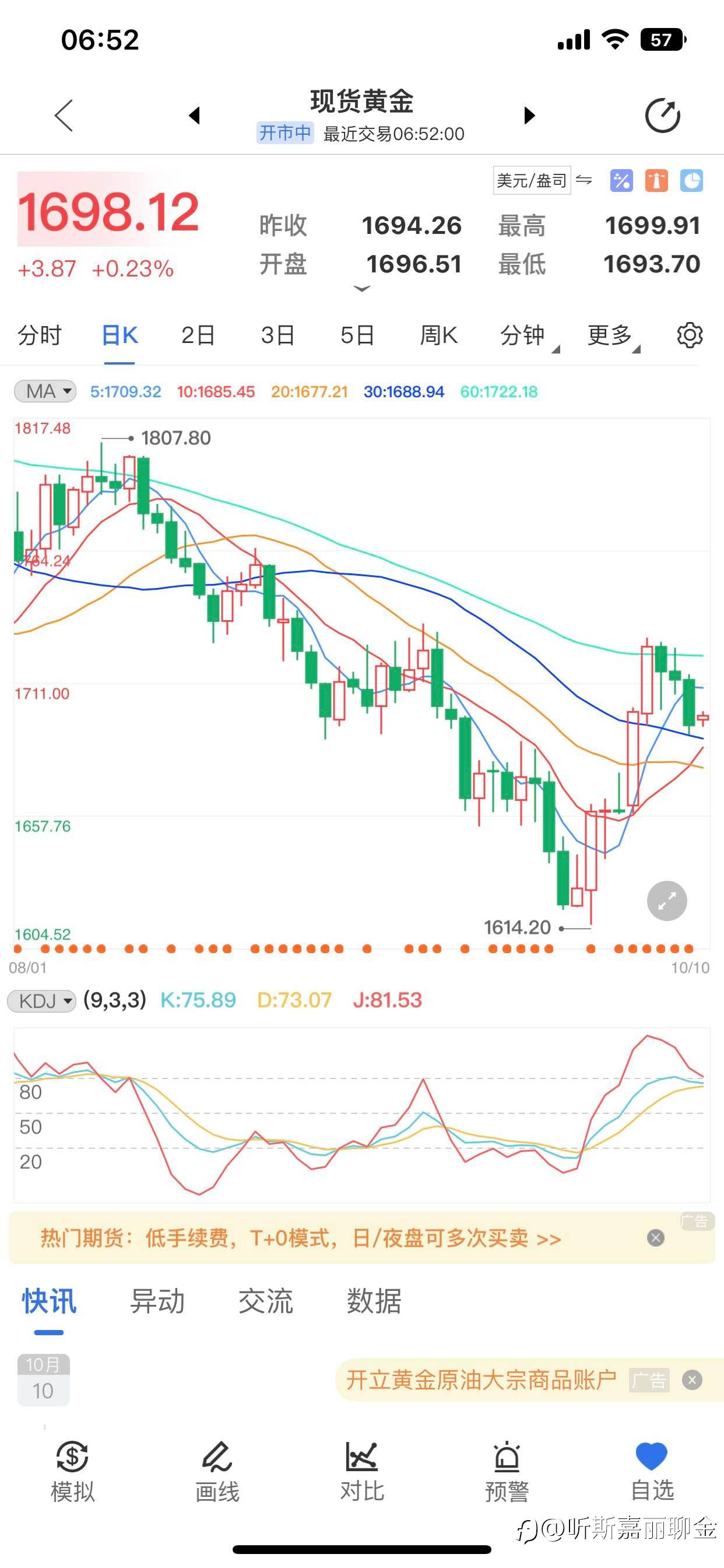 欧盘期间长线进空:1704进场 1706止损 目标1700-1695