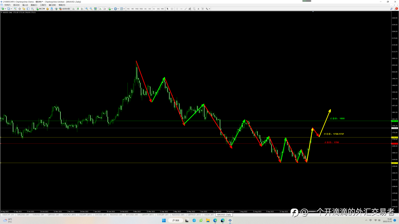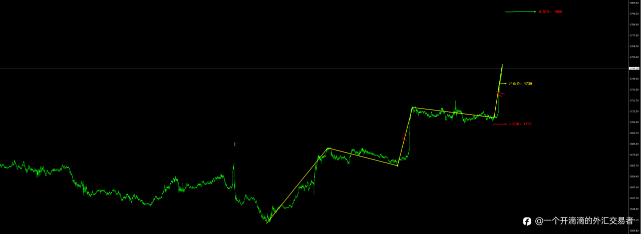 黄金30分钟级别段落上涨并没有背离,回调后会继续上行,中长线多单可将止损继续上移至1700,继续等待止盈,短线耐心等待回调进场:开仓价:1730;止损价:1700;止盈价:1800;