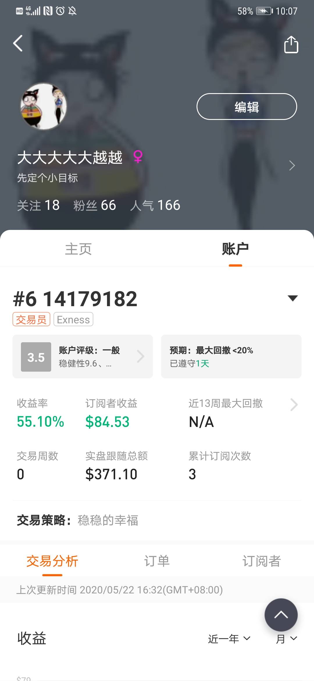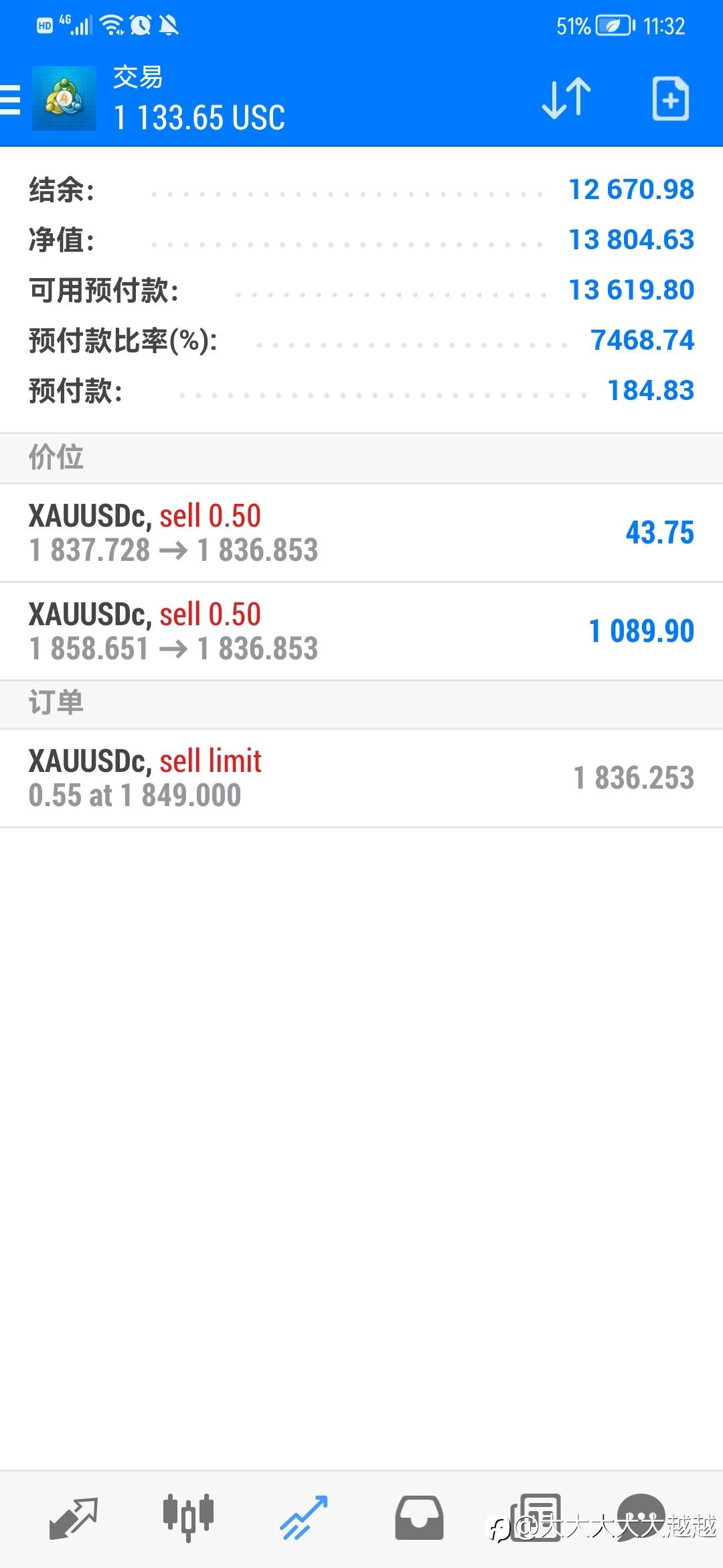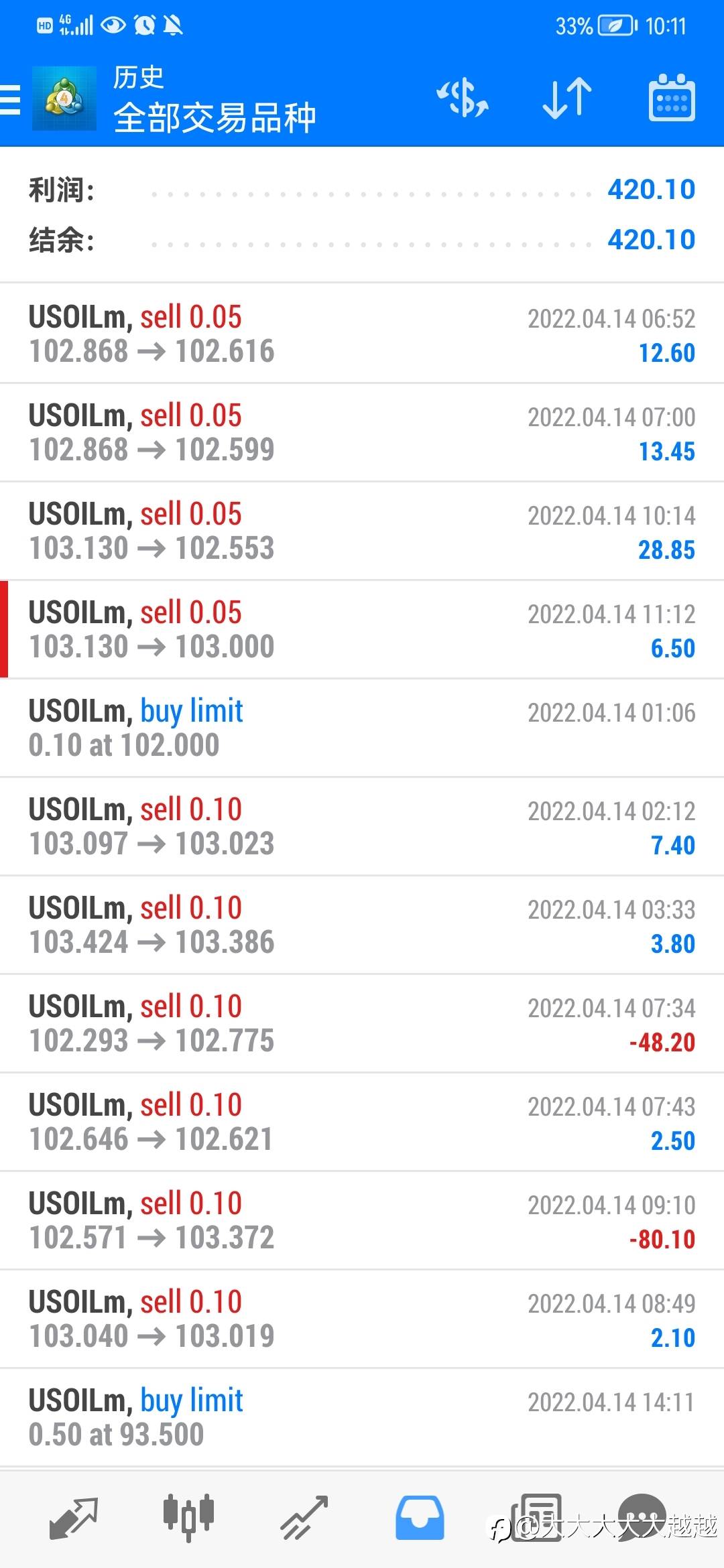 昨天因为数据出来前,赌利空,结果赌错了,导致了亏损,很抱歉,但是我相信今天能赚回来的。建议大家先0 .01倍跟单,观察一段时间搞清楚本人的做单风格,如果觉得行的,再加大跟单倍数,而不是跟一下,然后就关闭跟随,这样带来的损失,我也无能为力了。我做单是1手1手的下,仓位有些重,但是都带止损的,所以会有回撤,但是几乎不会爆仓。