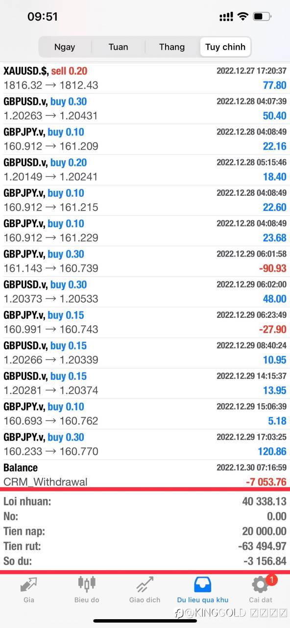 Tuần vừa rồi là tuần cuối cùng của tháng, thị trường cũng khá là xấu. Mình cũng bị SL đáng tiếc 2 lệnh GOLD, tuy nhiên những tín hiệu còn lại gửi anh em cũng cán full TP nên lợi nhuận 1 tuần vẫn là ổn định.