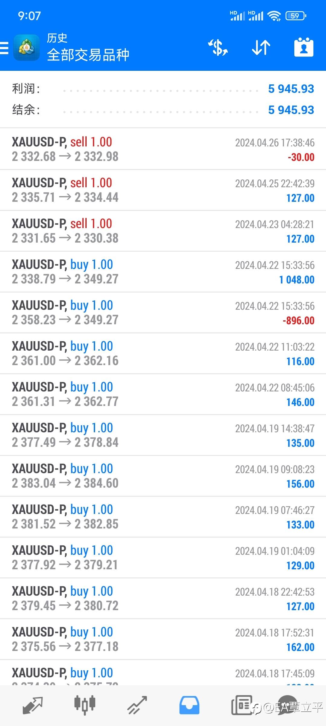 交易总收益:4625.55美金