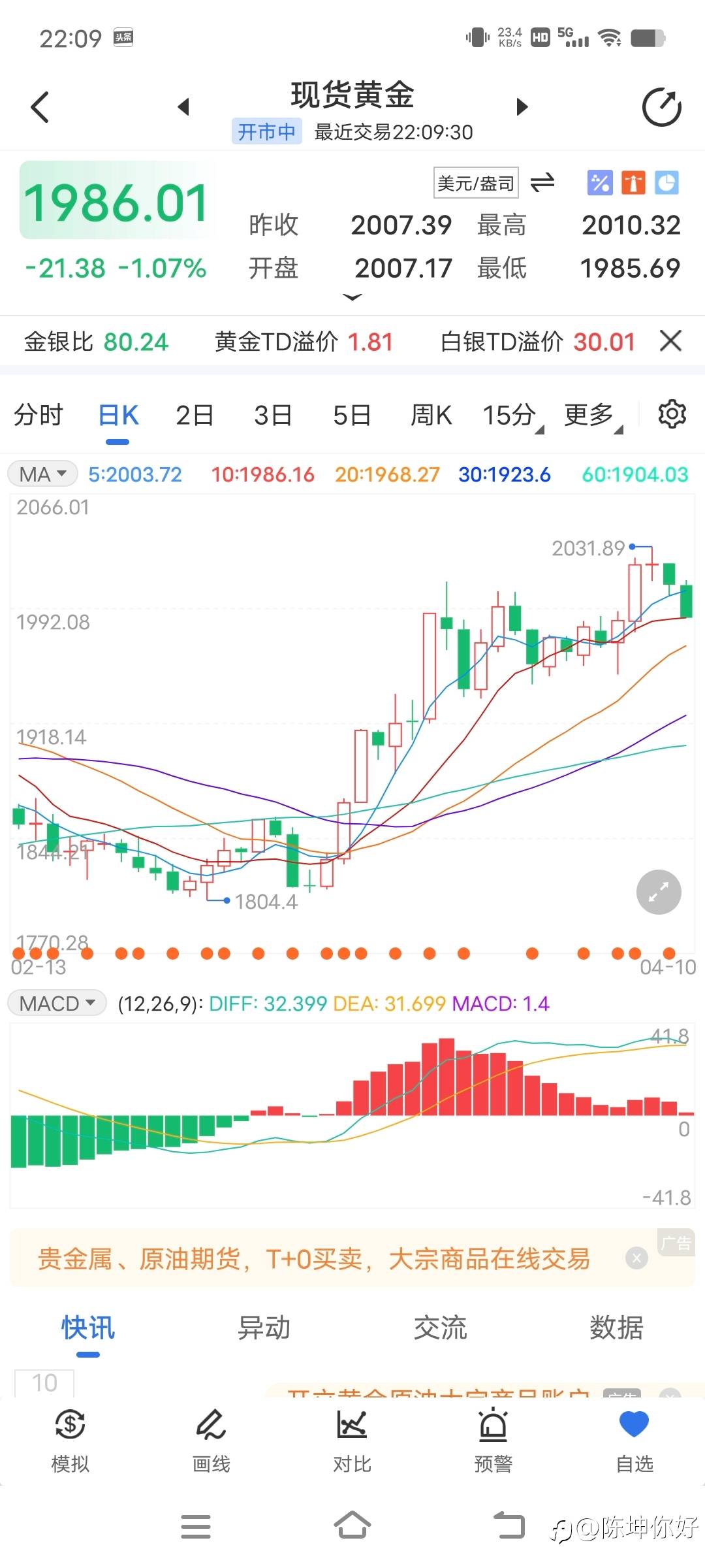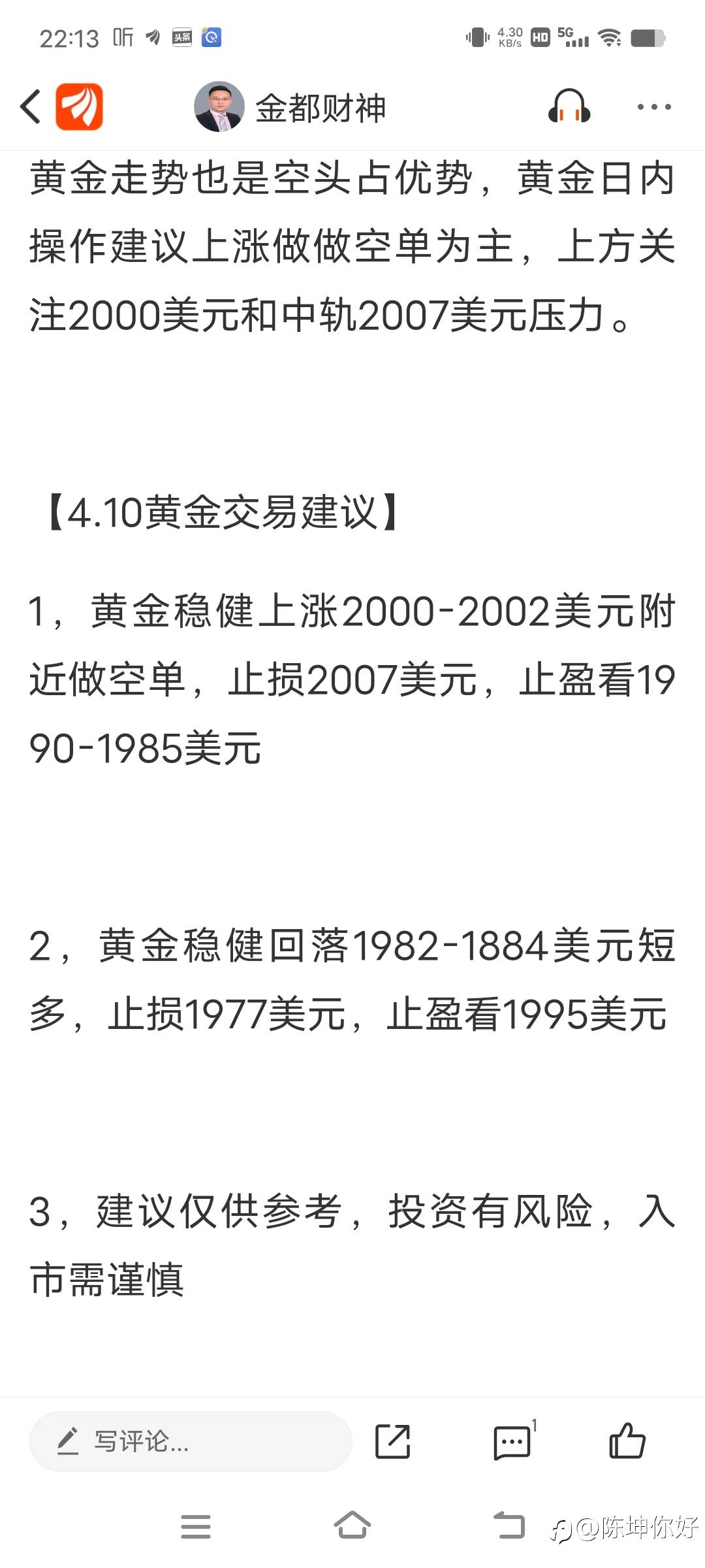 黄金建议2000-2002美元附近做空单,黄金现在1986美元,黄金空单获利,有跟上的朋友,可以减仓出局