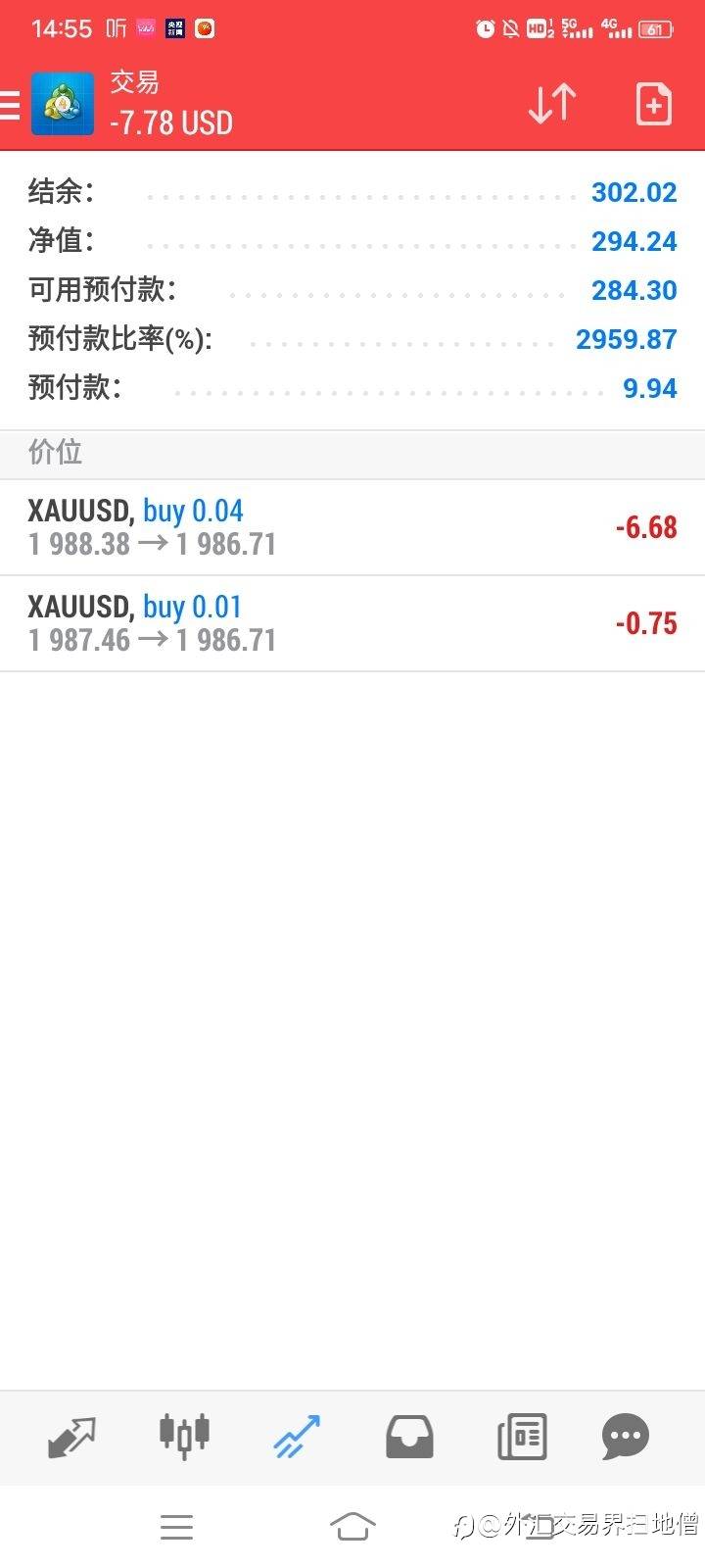 2、仓位控制。我一般用资金比例来衡量,比如我有一千美金,那么做单占用资金为二十到三十美金,也用最大能承受点数1500点为标志。