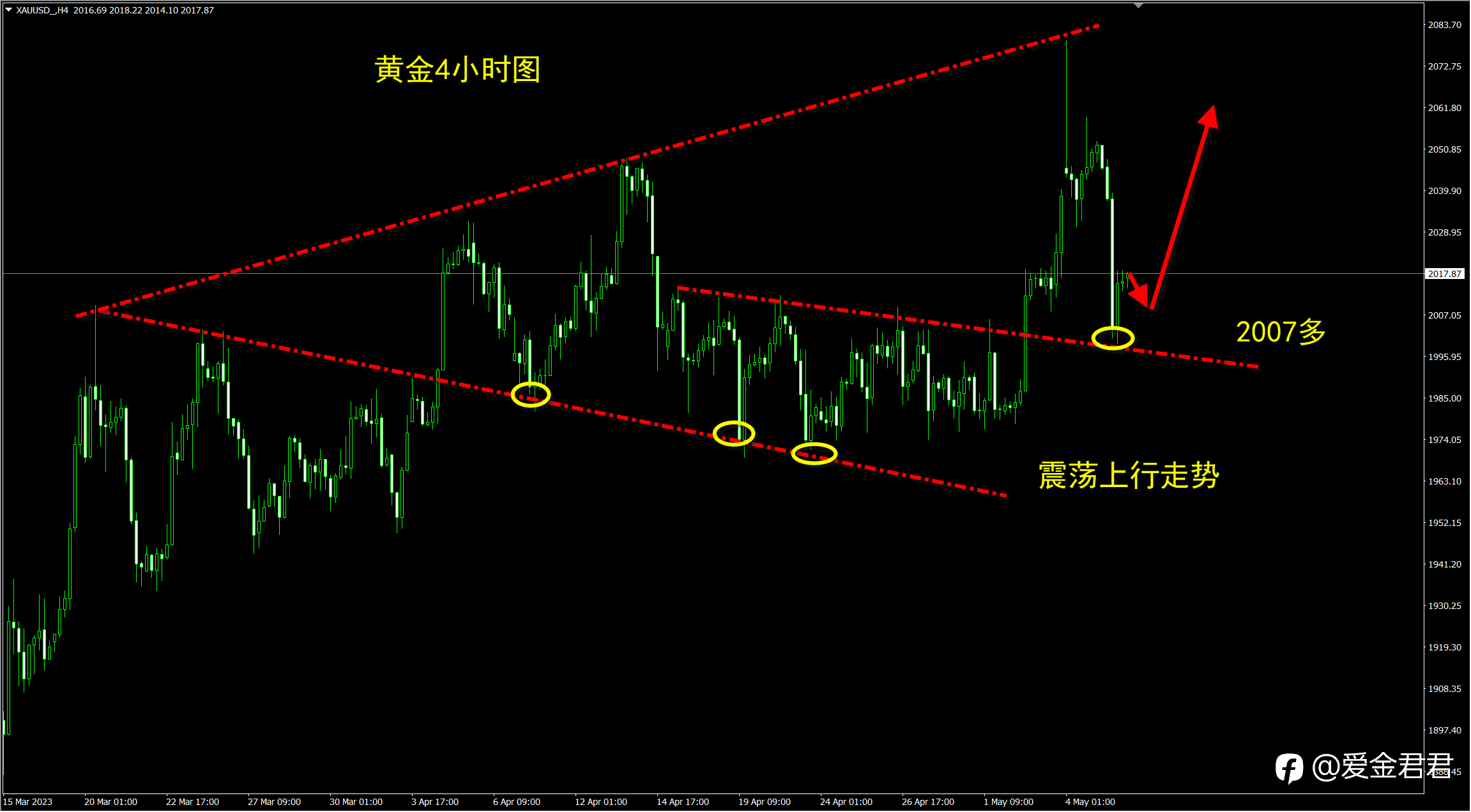 具体策略:黄金2007多,止损2000,止盈2040。#现货黄金#