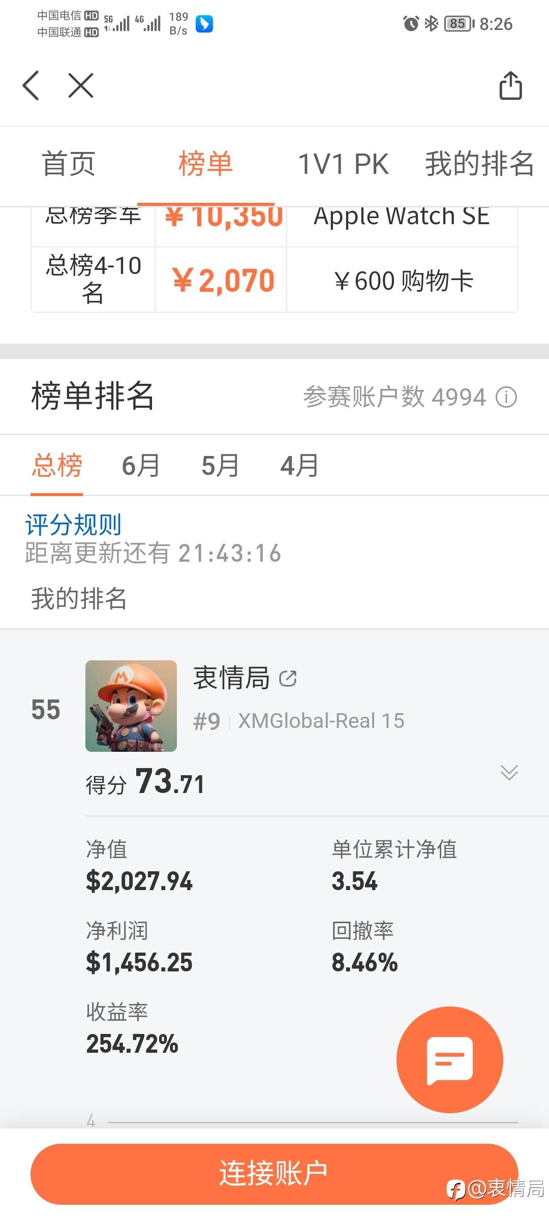本月目标收益50% 进前50名 目前已开开放订阅 1美金/月 一起努力 一起成长!
