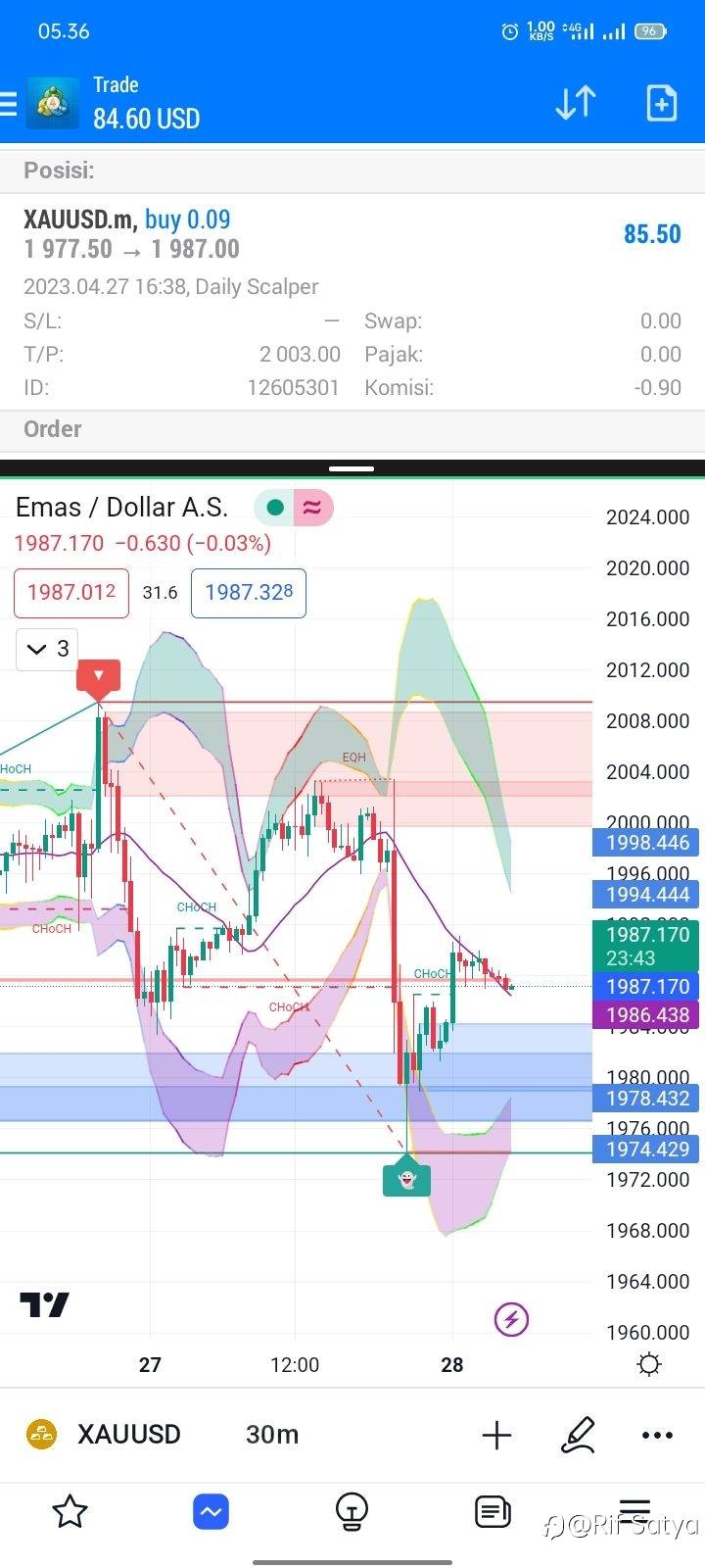 Alternatif: Apabila bergerak turun hingga menembus kebawah level $1978, XAUUSD berpeluang Sell karena berpotensi turun lebih lanjut menguji support selanjutnya di $1970 .