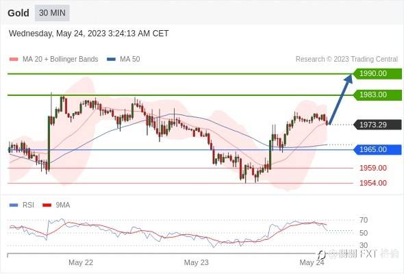 在 1952.00 之上,則作多,目標價為 1957.00 和 1964.00。