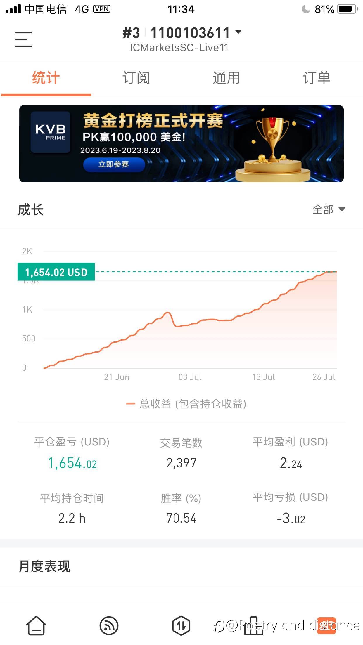 #新晋信号提供者#我来了,请大家关注我的#1交易员账户。穿越人海遇见你,交易从此不孤单。 Account #1 1100102466 Broker IC Markets Equity 2,056.78 USD History profit 56.78 USD