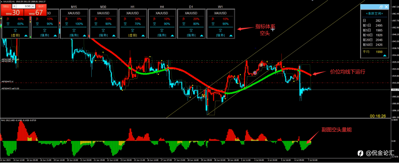 从当前的指标体系中不难看出,无论是主图的指标体系多空强弱以及均线的运行状态,还是从附图的指标来看,目前均是看空为主的操作思路