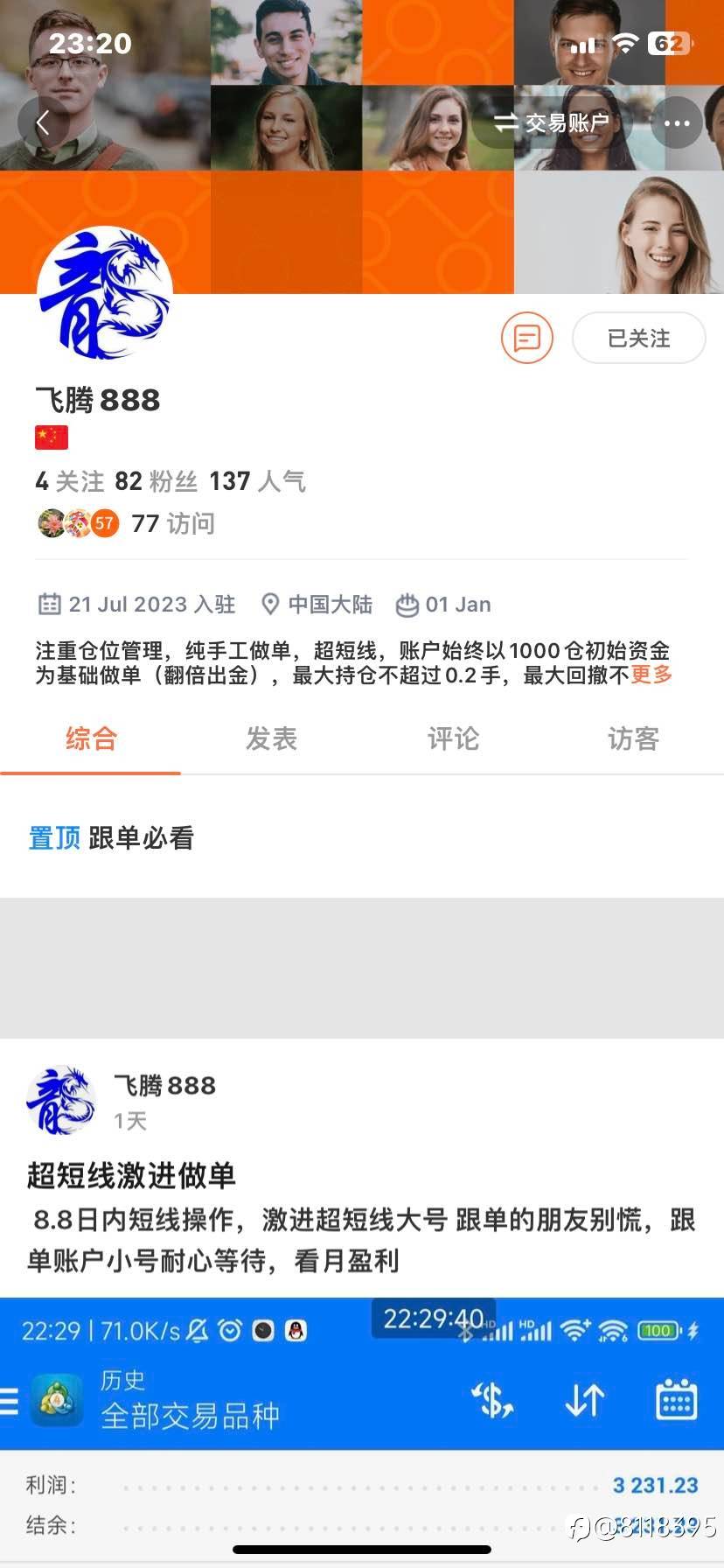 飞腾888垃圾信号,订阅三天,中间一天关闭,两天都在扛单的哭泣,第三天损在最低点,骚操作,接近顶位买多单,跟三天亏了亏了快六百刀,其中自己还及时止损了几单,菜鸟,垃圾信号非你莫属
