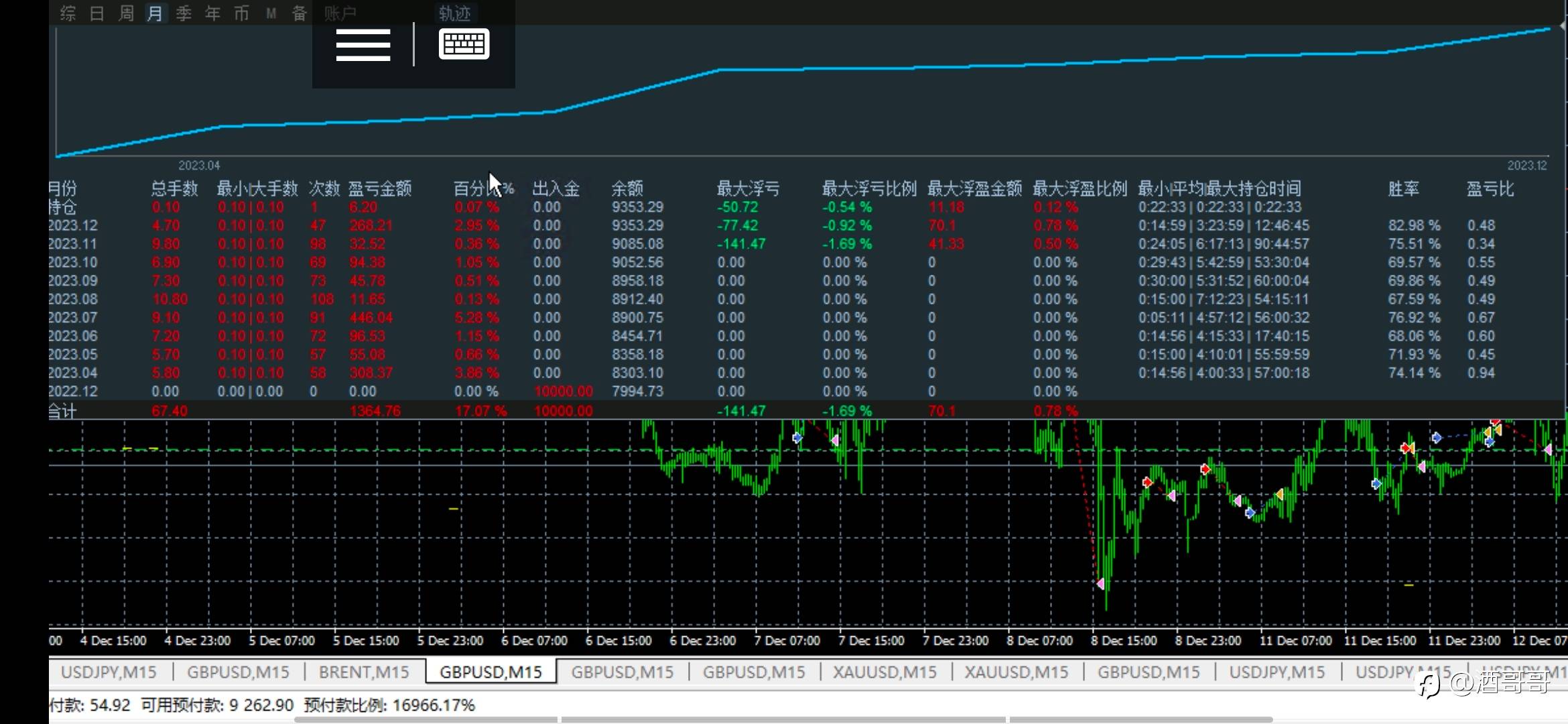 这一波单边下跌已经快80美金了,FM有多少马丁信号爆了。我这个全自动马丁会忍着不加仓,整波下来最大0.17手。浮亏不足15%,快忽略不计了。FM里评分靠前的,都带马丁性质,选择信号的时候必须做好风控。