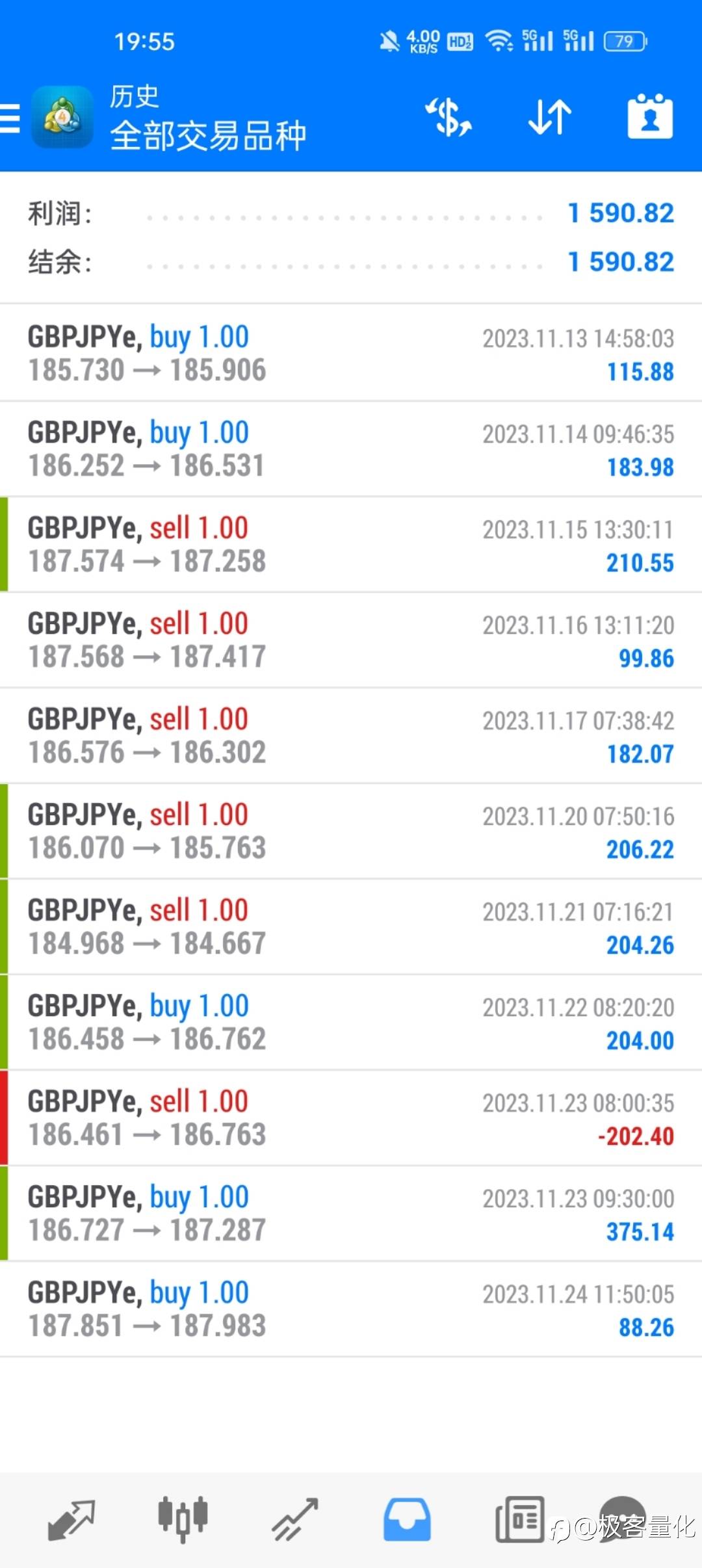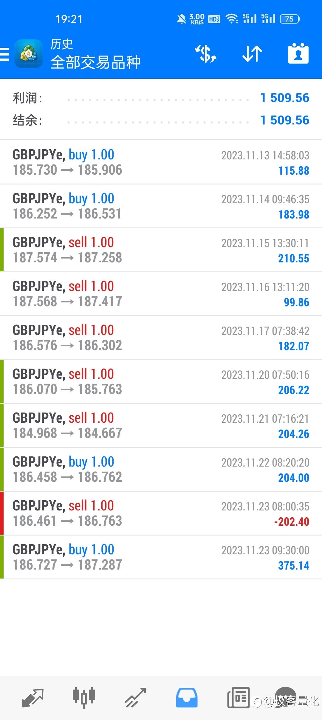 (3)只要单子盈利之后,就不再继续做单,为的就是控制贪念,防止上头