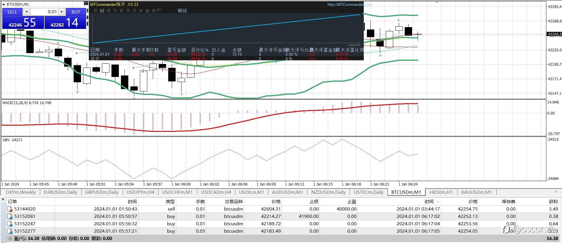小手数,休市,做趋势BTC,0.2手,盈利34.38😝