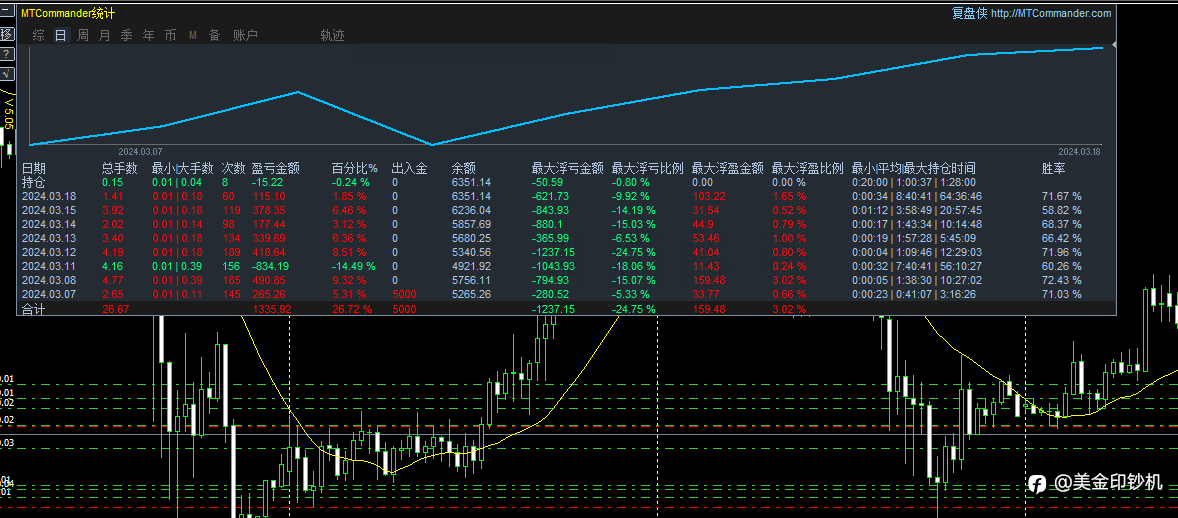 黄金波段对冲EA,1倍交易月收益3000+,日收益200-400,低浮亏,高盈亏比,近一月回测最大浮亏700,强制止损1000。