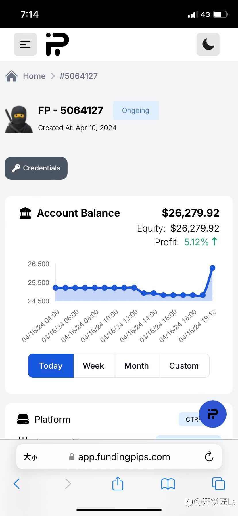 类#FTMO# 的折扣平台funding pips,试水账户,花32美元报名费得5000账户.历经2周拿到资金账户.目前收益300,10倍利润。同步已经报名25000账户,下一步参加10万美元账户。