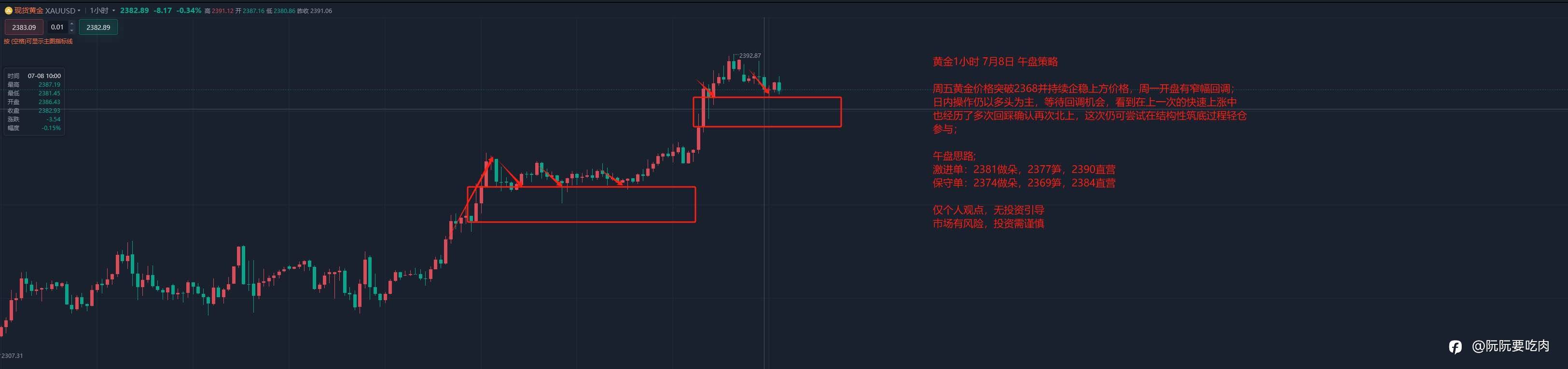 #XAU/USD# 周五,黄金价格成功突破 2368 并持续稳定于该价位之上。然而,周一开盘后出现窄幅回调。就日内操作而言,仍应以多头方向为主,耐心等待回调的契机。需注意的是,在上一轮的快速上扬过程中,也曾历经多次回踩确认后再度向北挺进。此次,仍可在结构性筑底阶段尝试轻仓参与。