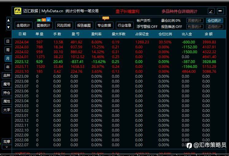 每单带止赢止损,本金一万,运行半年。