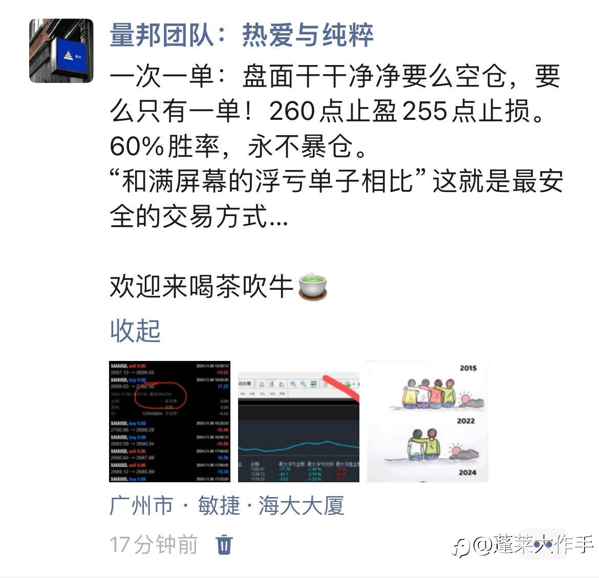 一次一单、不加仓、不翻倍开仓、不抗单、无浮亏、不过晚。