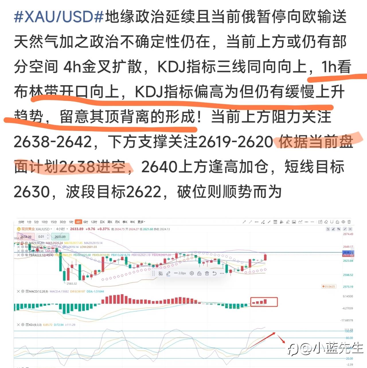 从技术面来看,据4时k和日k分析,MA线表现出多头信号,MACD柱也呈现转正信号,今日有望试探布林线日线中轨2677阻力位附近。支撑位则关注2625-2630,操作上以逢低买涨为主,回落到2640下方逐步进多单,当首次试探2670上方可适当做回调