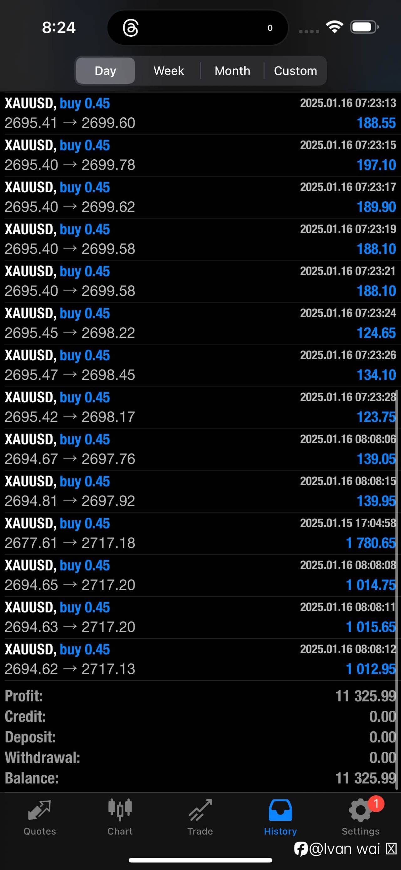 #XAU/USD# #XMGlobal# 日内交易结果!