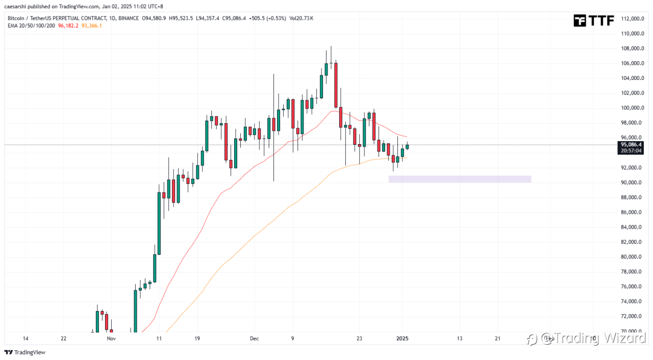 說回正題,比特幣如果維持上漲趨勢,那麼不會跌破103100附近,這裡要看4H線的支撐能否站穩。如果到了這個位置有劇烈的價格反應,向上回收,並且之後繼續向上走,則說明比特幣買盤較強,暫時不用考慮大回調或者回補80K-90K區間缺口的問題。如果實體跌破這個支撐位,並且回測不過,就需要小心風險了。