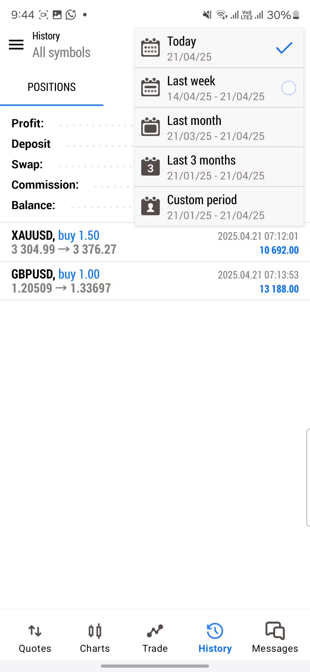 #US30#It seems like there might be a mix-up with the numbers, as the Dow Jones typically doesn't experience such large single-day moves. It may have been a typo or misunderstanding. The Dow Jones Industrial Average, in general, moves in the range of hundreds of points on any given day, but not typically by 44,824 points in a single session.