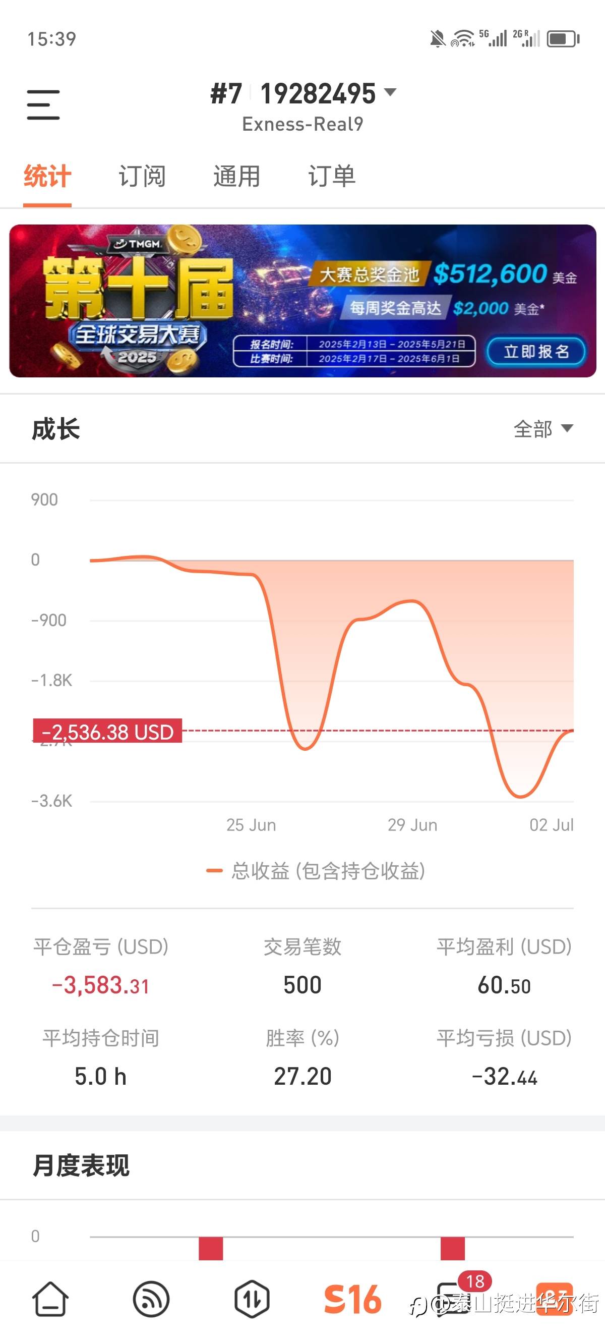 本人的观摩账号,也是挂在这里的6号,500刀挑战2万美金,开始了!😍