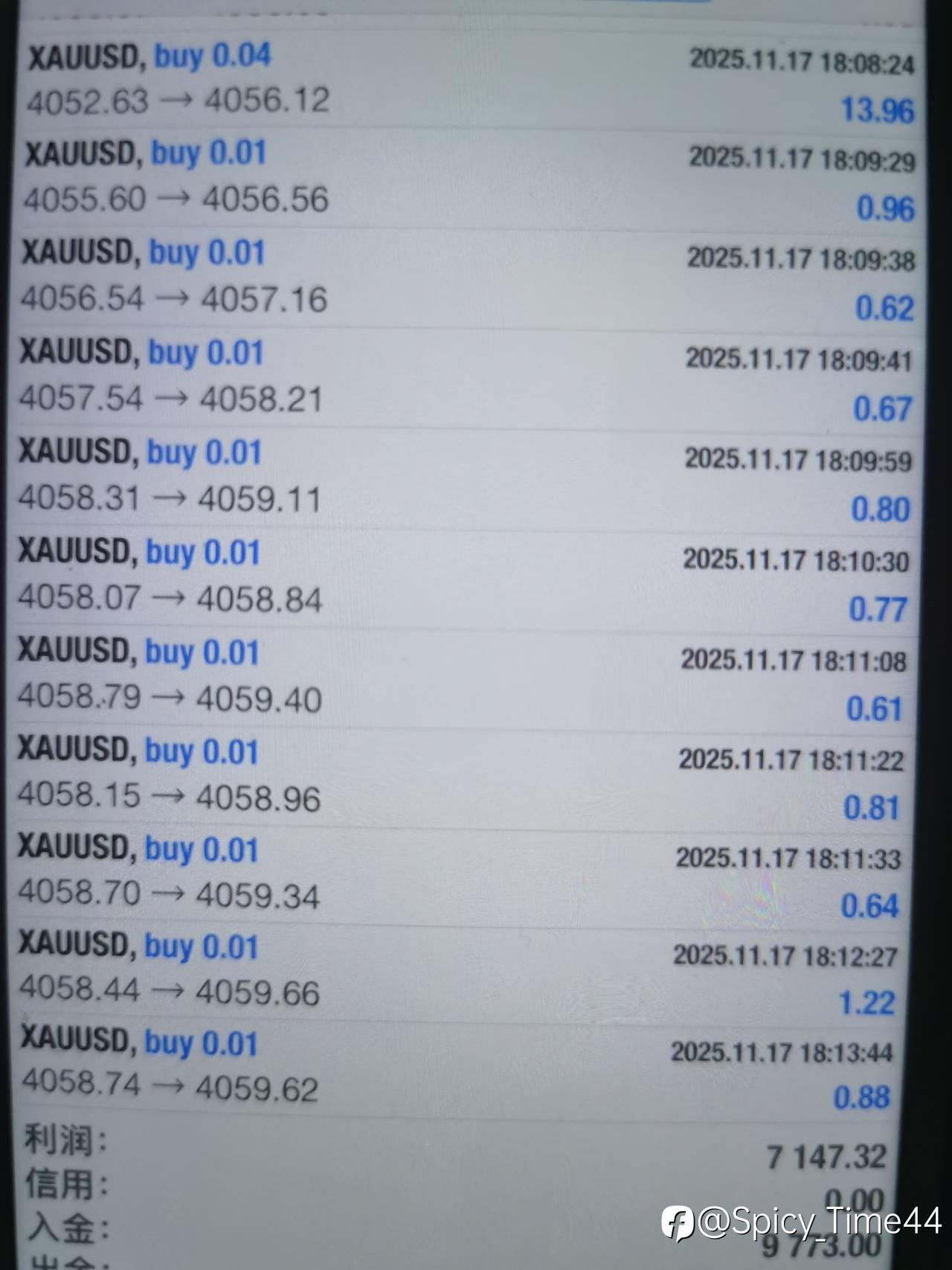 11月14日下午入金 9773美金 现在账号里有1.7万左右 总共利润7100美金 目标10万 加油✊ 交易有风险,投资需谨慎!