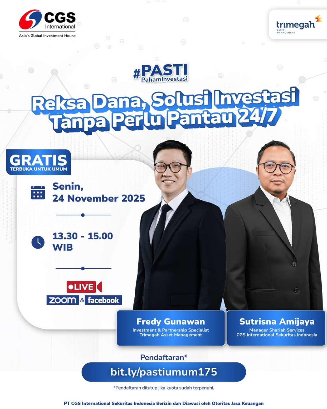 Pelajari reksa dana lebih dalam di kelas #PastiPahamInvestasi bersama CGS International Sekuritas Indonesia secara online via Aplikasi ZOOM dan Facebook official kami!