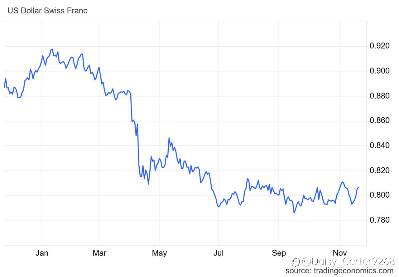 The franc stays strong above 0.80/USD as markets expect the SNB to keep rates at 0% in December.