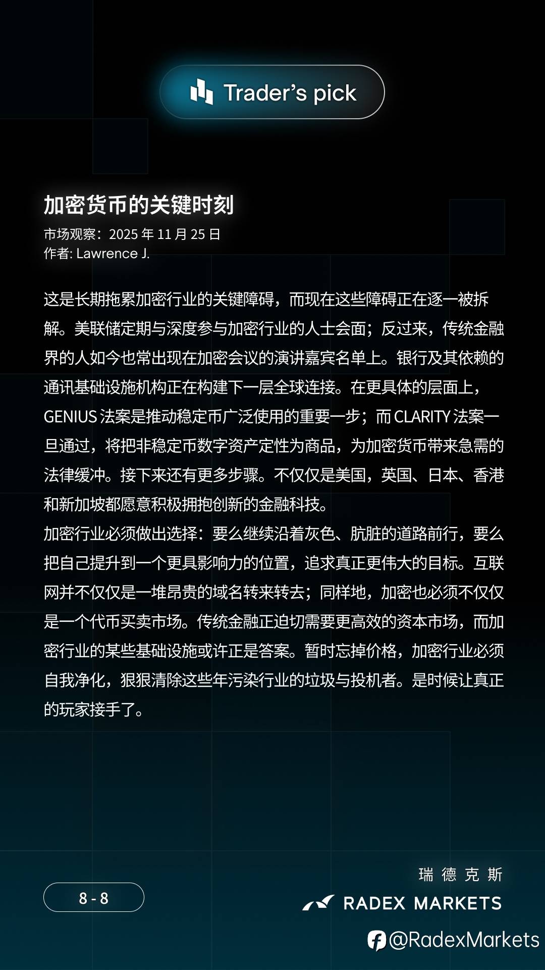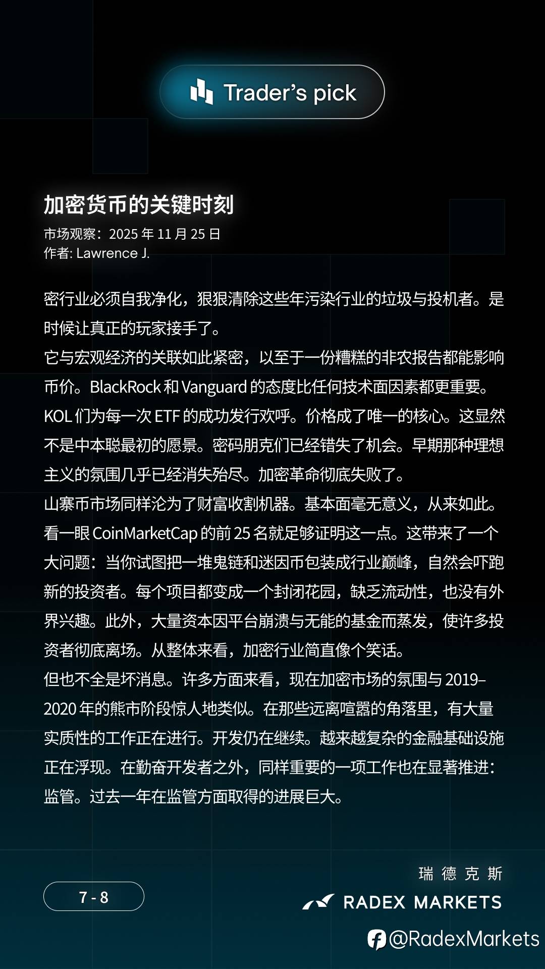 🔹 加密的十字路口:是继续做「代币市场」,还是成为未来的金融基础设施?