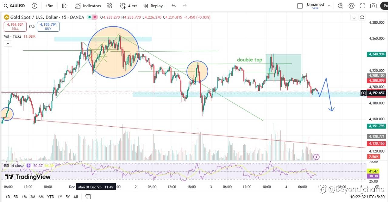 Gold reacted aggressively to the ADP & ISM releases, triggering strong selling pressure and signalling potential continuation toward 4185–4165. The structure currently favours bears, and unless a reversal base forms, the downside remains the path of least resistance.