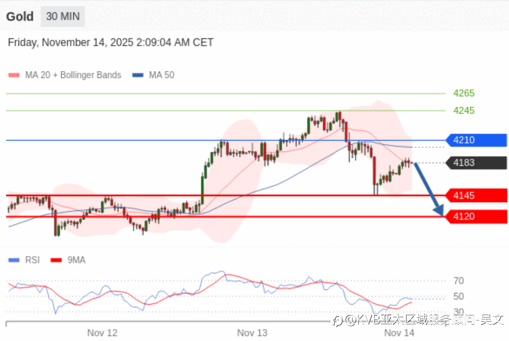 在 4190 下,看空,目标价位定在 4174 ,然后为 4162。