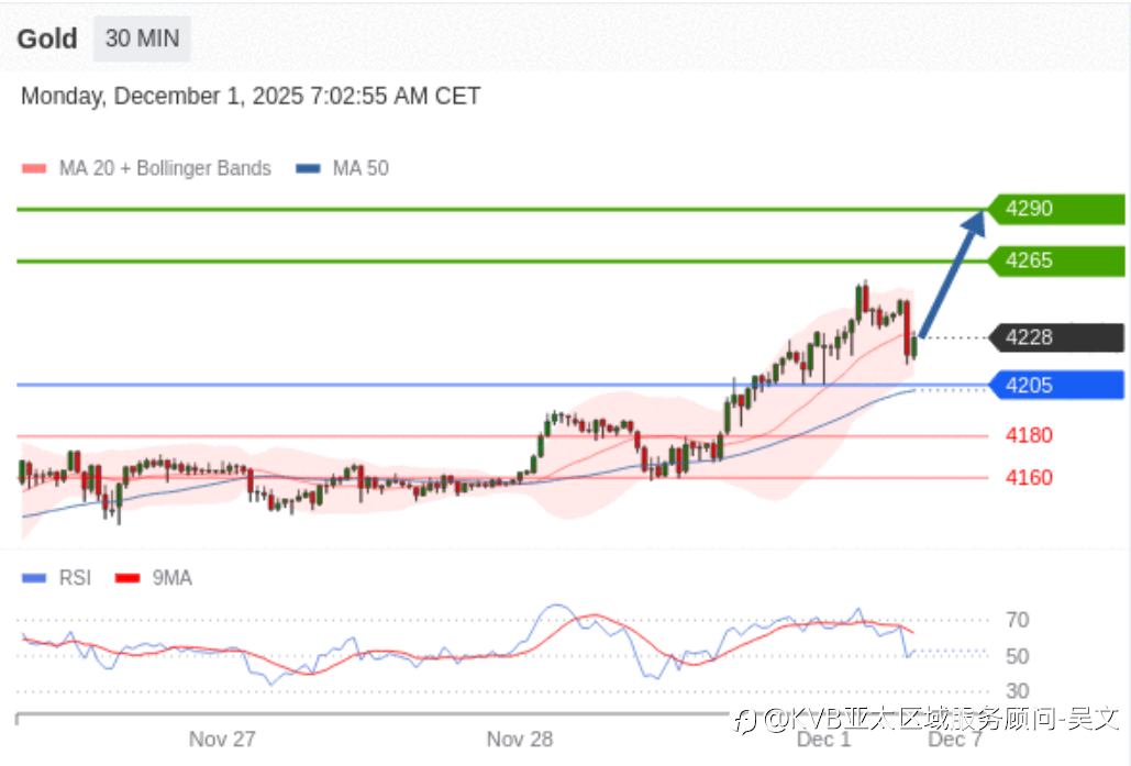 在 4190 之上,看涨,目标价位为 4218 ,然后为 4228 。