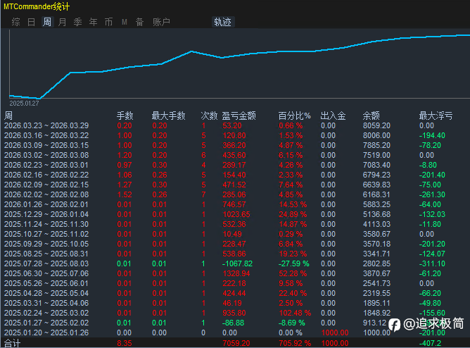 天秤座EA 2.0 1年2个月总盈利141.87%,利润一点一点积累