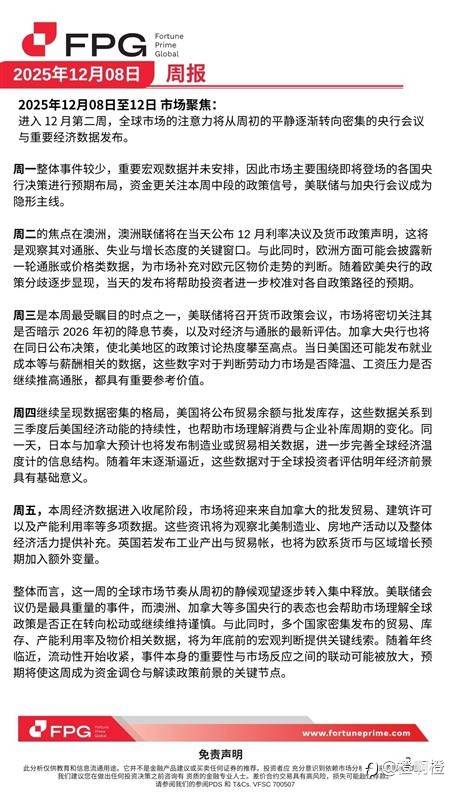 2025年12月8日 年末“超级决策周”来临,全球多国关键会议与重要数据集中公布,市场波动或将明显放大